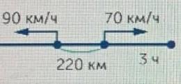 Автомобиль и автобус выехали из 2 городов расстояние которых 220 км, Авто едет со скоростью 90 км/ч а автобус 70 км/ч они проехали 3 часа. Какое расстояние стало между ними