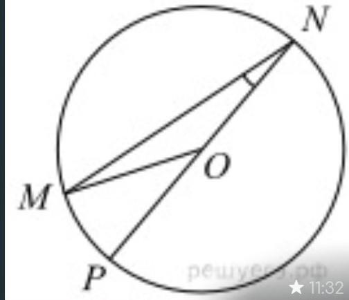 1. Найдите градусную меру центрального ∠MON, если известно, NP — диаметр, а градусная мера ∠MNP равна 30°.