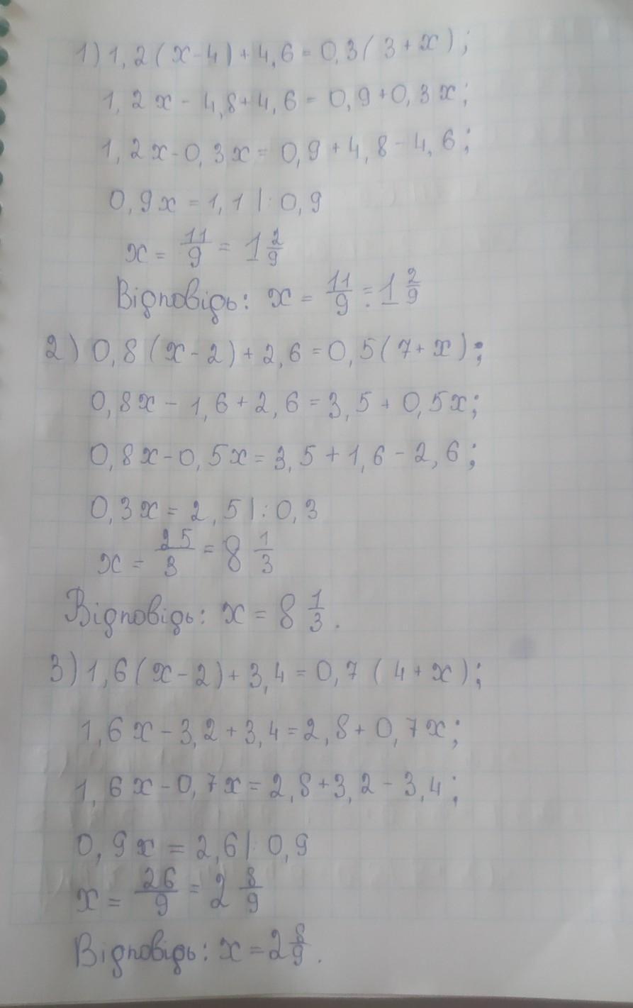 3) 1,6(x − 2) + 3,4 = 0,7(4 + x)