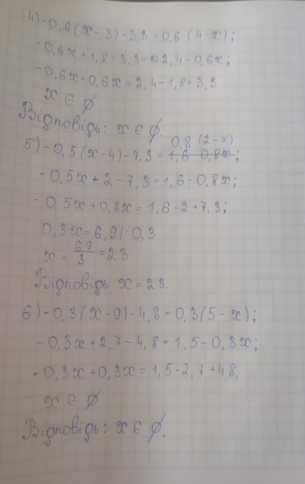 4)- 0,6(x − 3) − 3,3 = 0,6(4 − x)