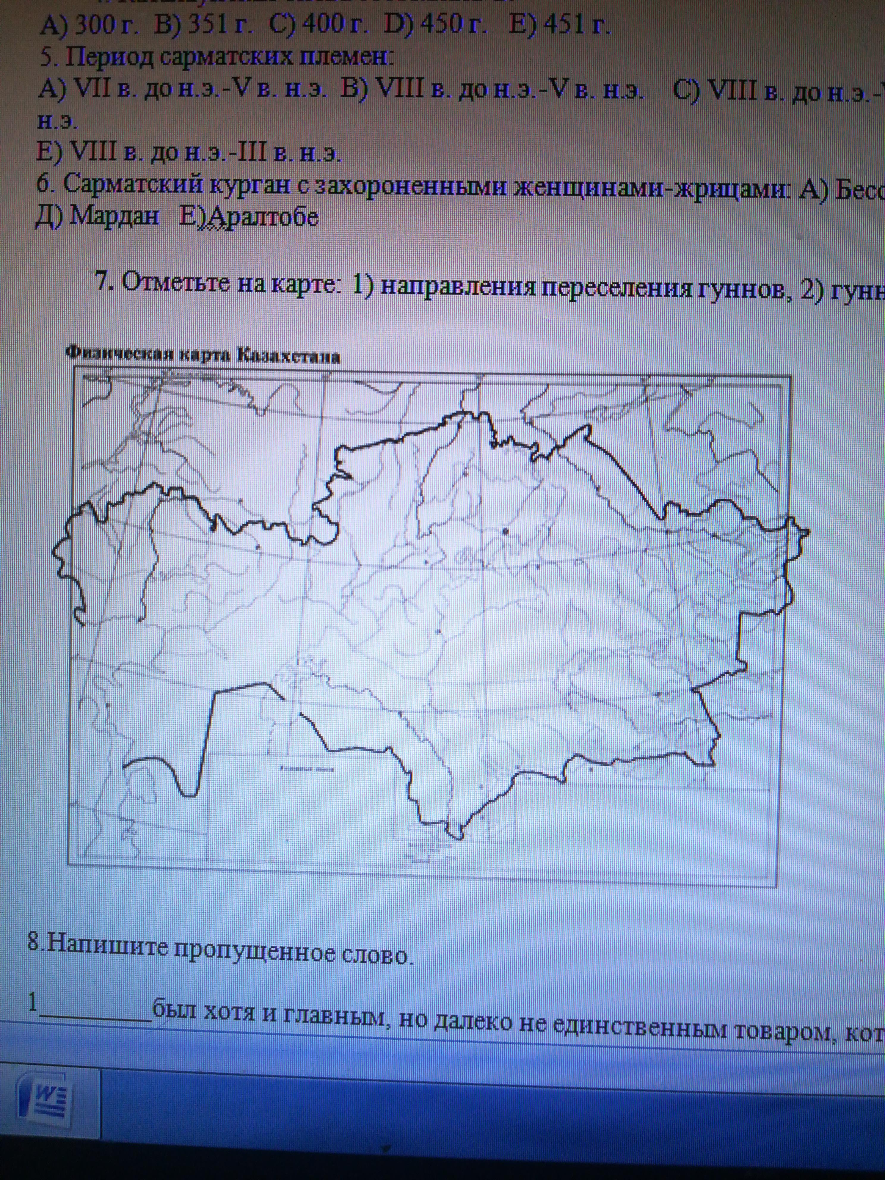 Отметьте на карте:1) направления переселения гуннов, 2) гунское государство, 3) государство сарматов.