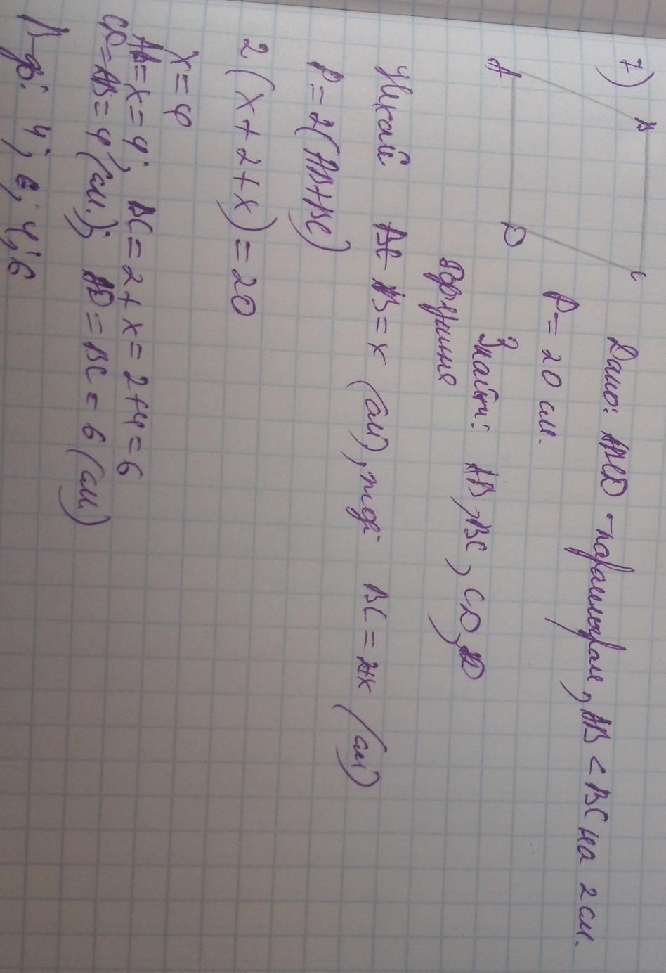 одна із сторін паралелограма на 2 см менша за другу сторону периметр паралелограма 20 см знайти сторони паралелограма