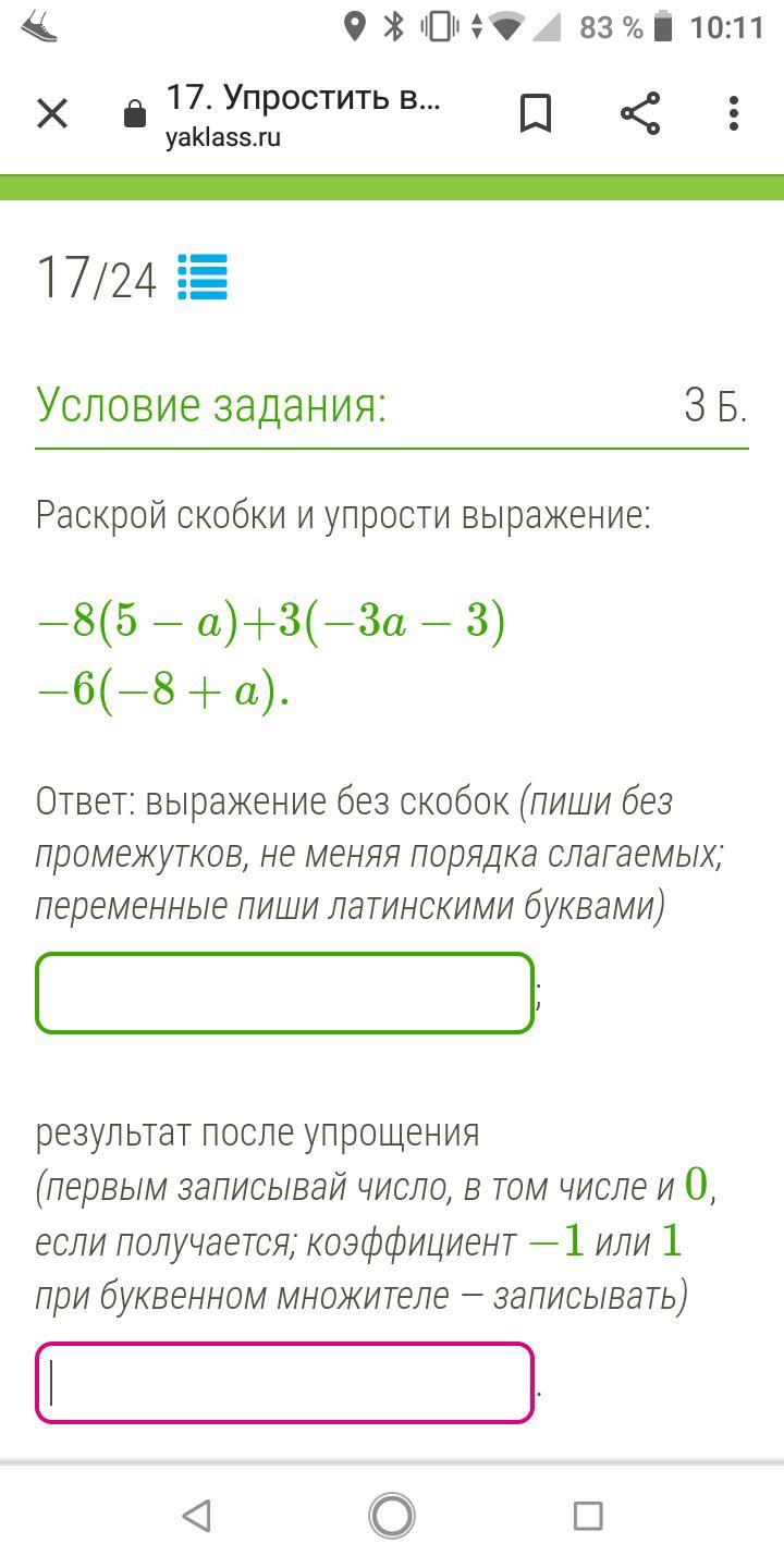 Промежуточный ответ : -40+8а-9а-9+48-6а