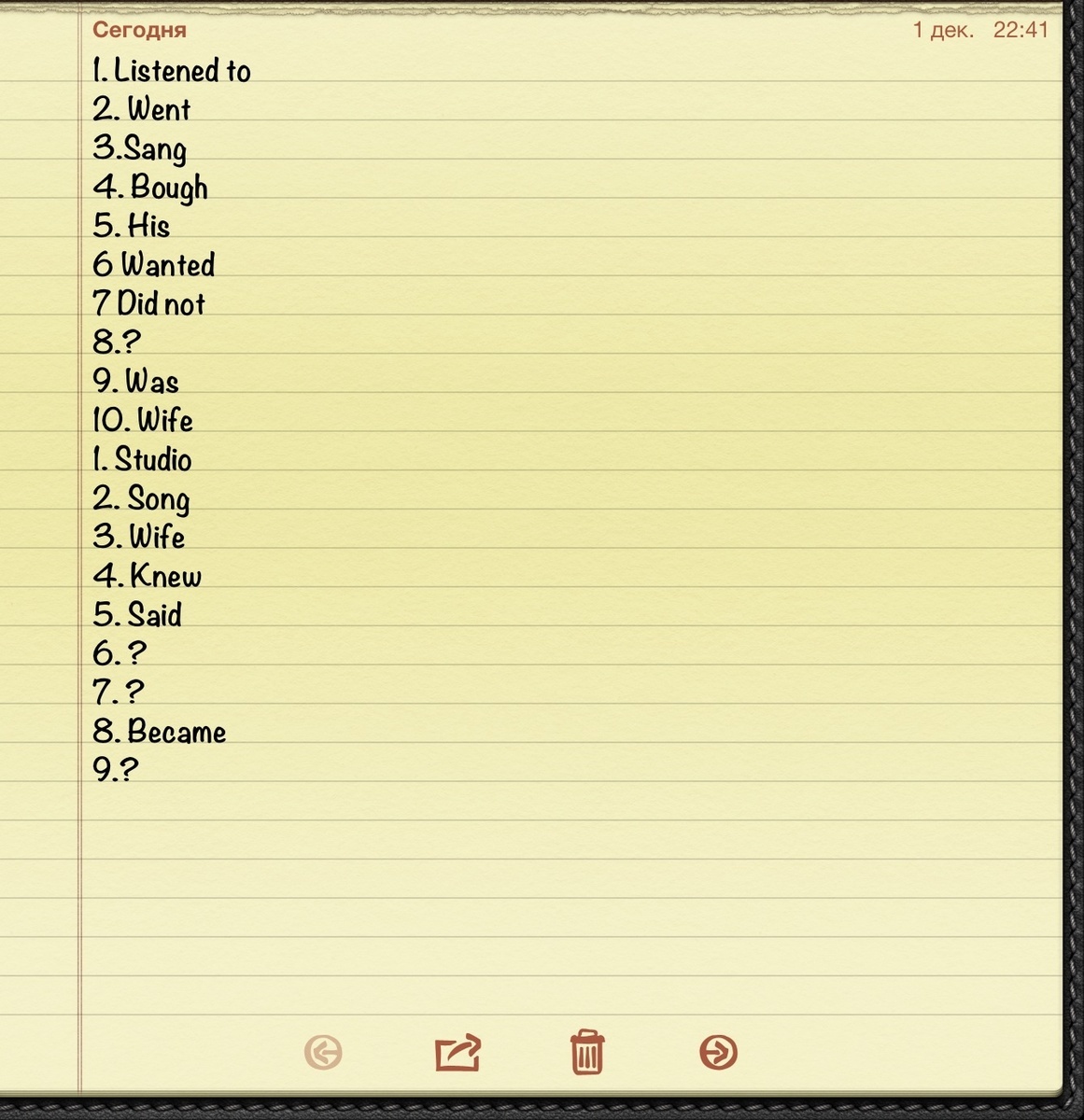 2 - Studio, record, secretary, heard, told, It’s, played, went, did