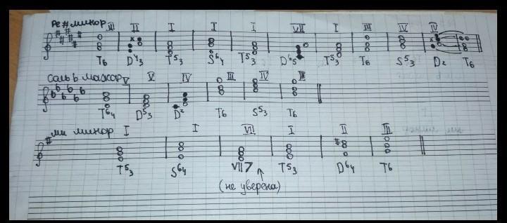 построить и спеть аккордовую последовательность в тональности с двумя диезами;
