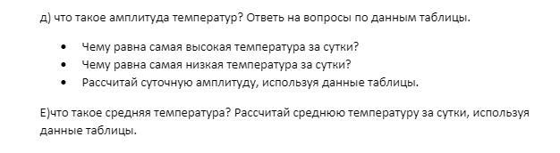 е)Середния температура ето Середния температура за день
