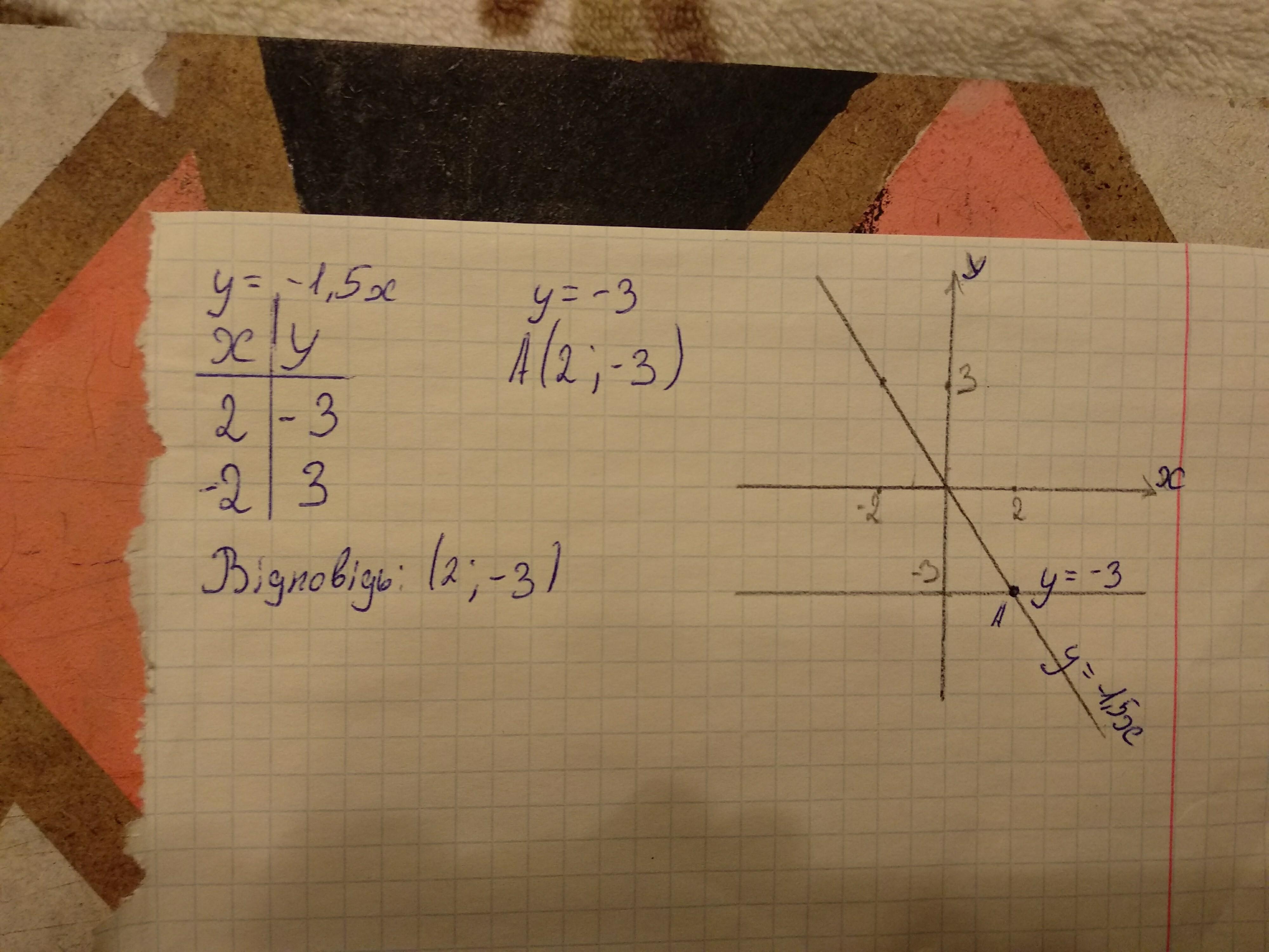 Побудувати в однiй системi координат графiки функцiй y=2x-5 i y=3 та знайти координати точки їхнього перетину