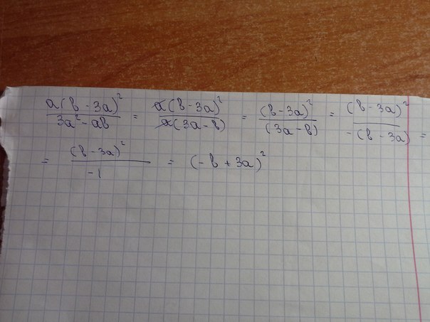 a(b-3a)^2/3a^2-ab = a(b-3a)^2/a(3a-b) = (b-3a)^2/3a-b = (3a-b)^2/3a-b = 3a-b