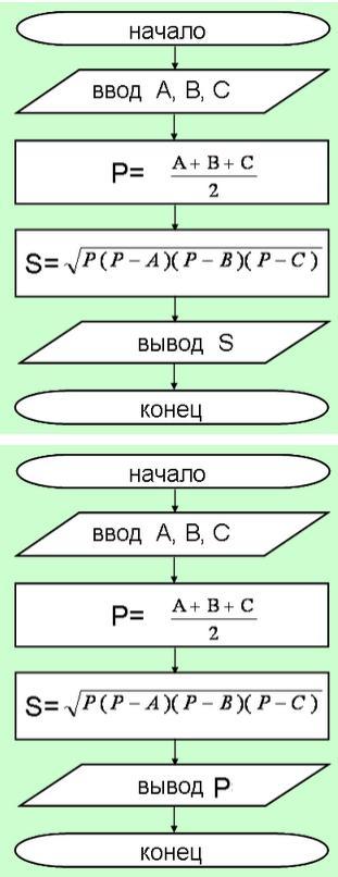 Даны длины сторон треугольника A, B, C. Найти площадь треугольника S.