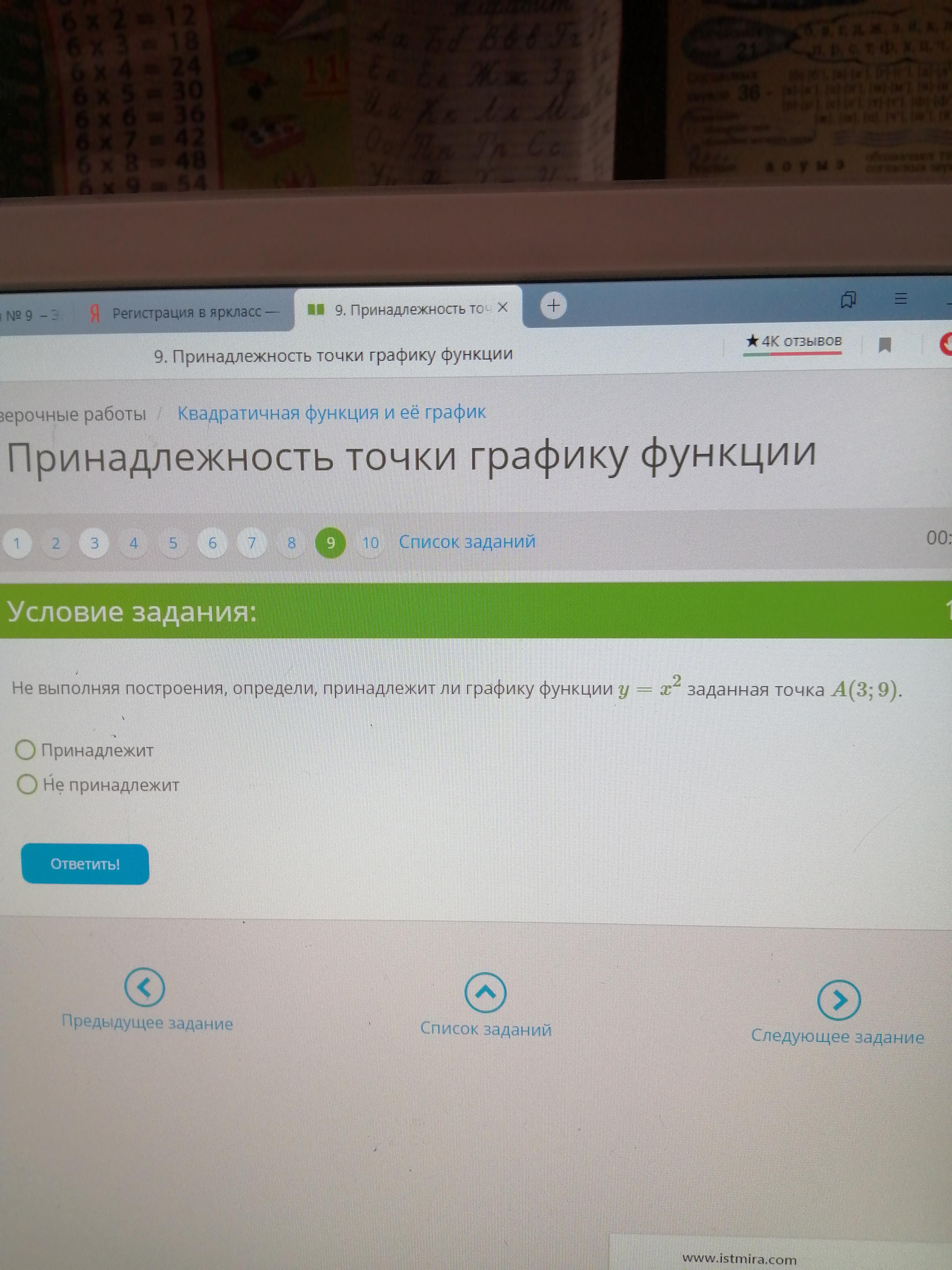 Не принадлежит, т.к при x=3 y не будет равен 9