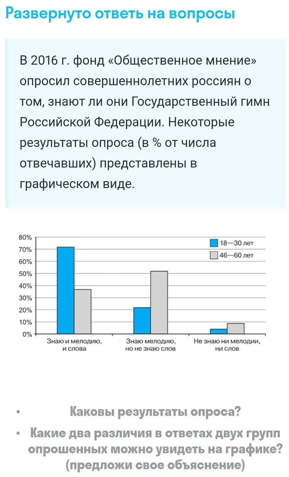 Люди от 18 до 30 лет хорошо знают гимн, в отличии от людей от 46 до 60.