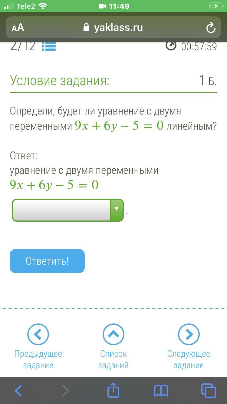 Уравнение с двумя переменными 9x + 6y - 5 = 0 является линейным.
