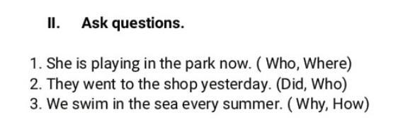 1) Who playing in the park now?, Where is she playing now ?2) Did they go to the shop yesterday?, Who went to the shop yesterday?