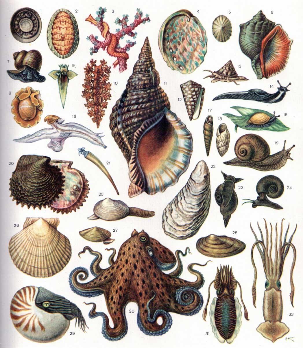 2) Подтвердите примерами многообразие класса. Напишите кратко о роли моллюсков в природе и их значения для человека