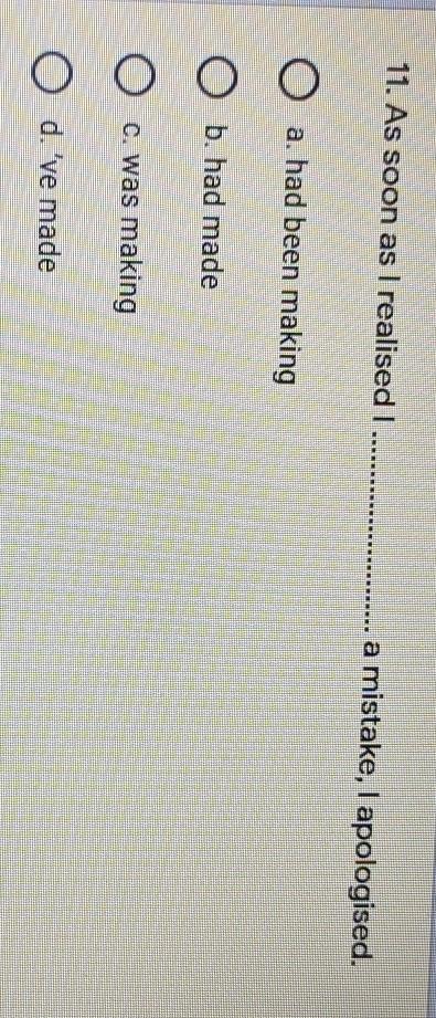 11. As soon as I realised I b. had made a mistake, I apologised.