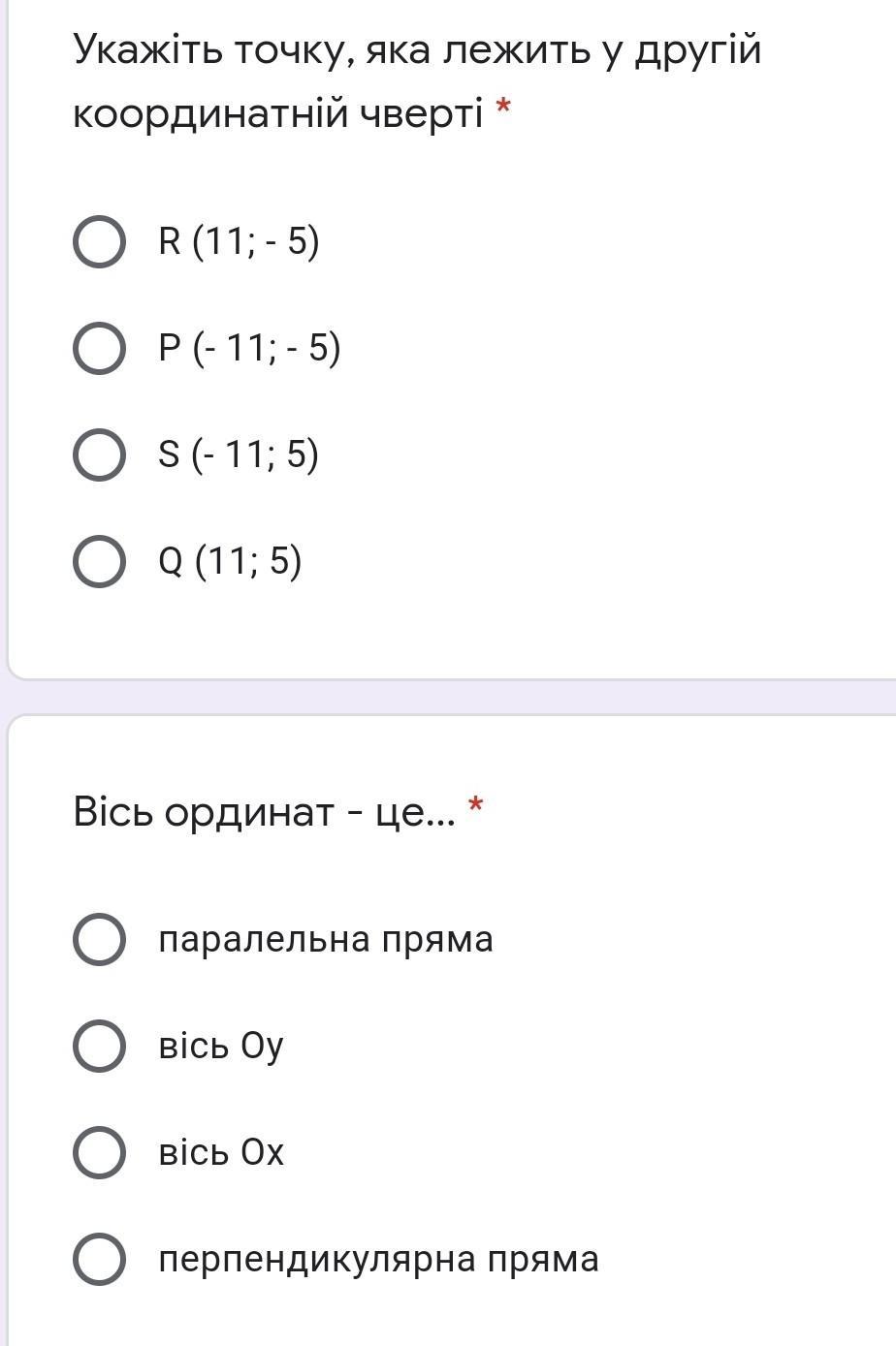Ответ: 1) точька S 2) вісь Оу