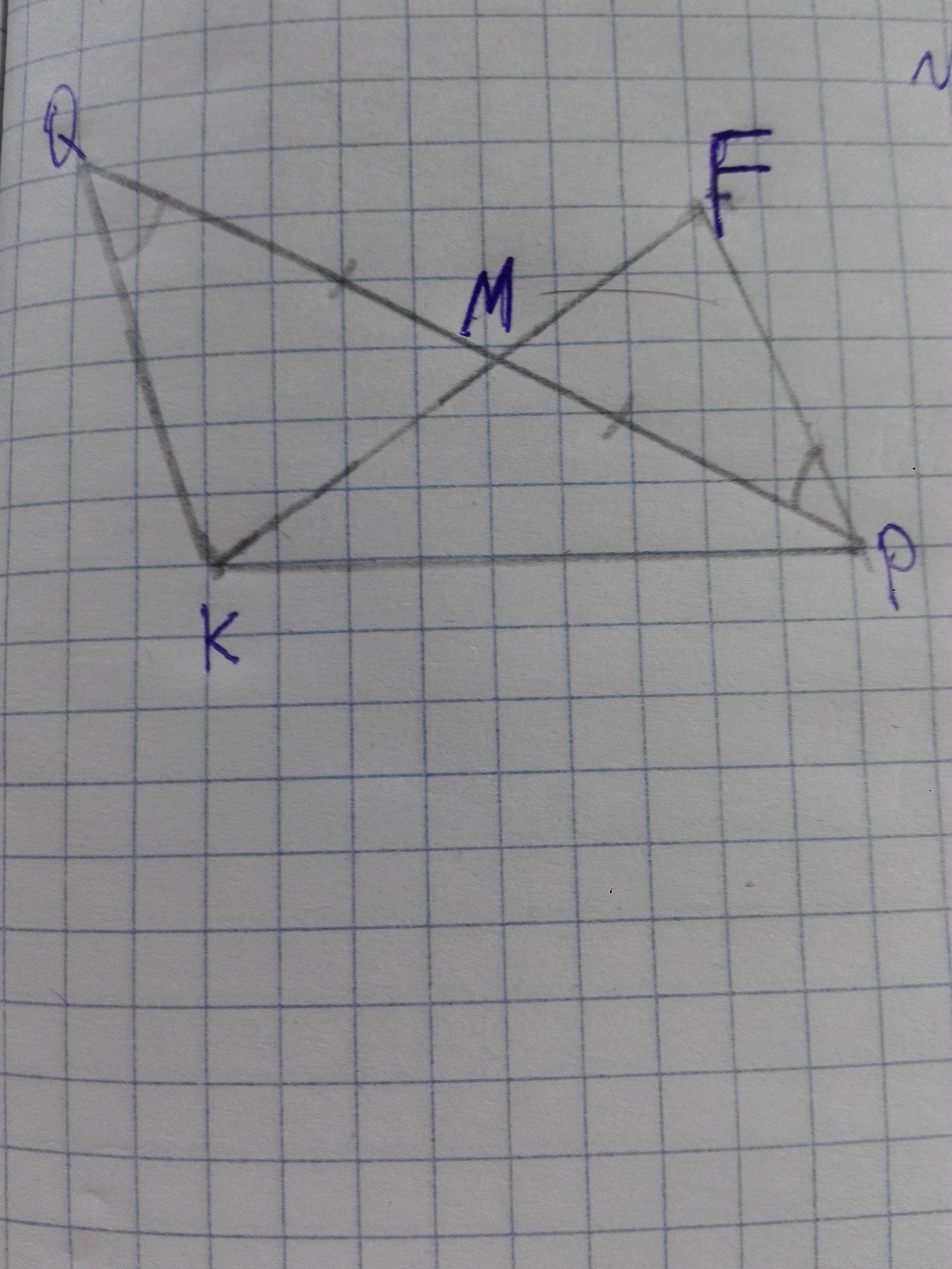 На рисунке QM=MP, угол KMQ = углу FPM. Докажите что треугольник KQN = треугольнику PFM.