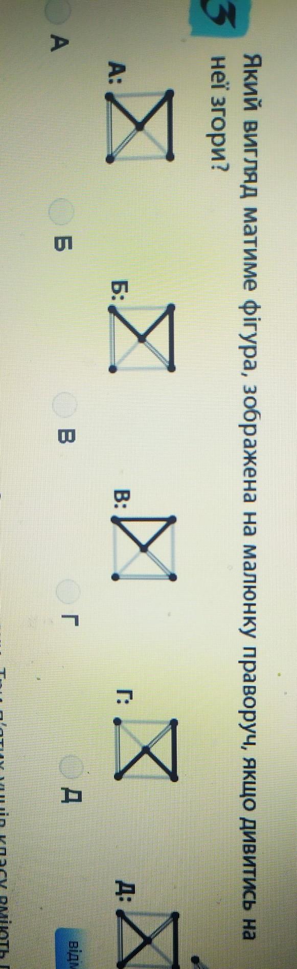 який вигляд матиме фігура,зоображенна на малюнку праворуч якщо дивитись на неї з гори