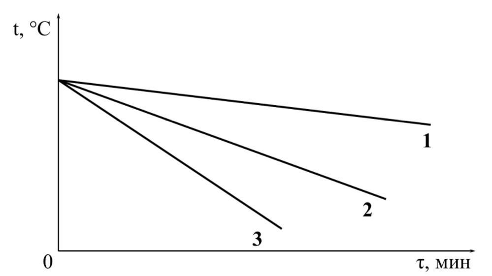 3.Температура трёх остывающих в одних и тех же условиях тел массой 5 кг каждое изменяется со временем так, как показано на рисунке.