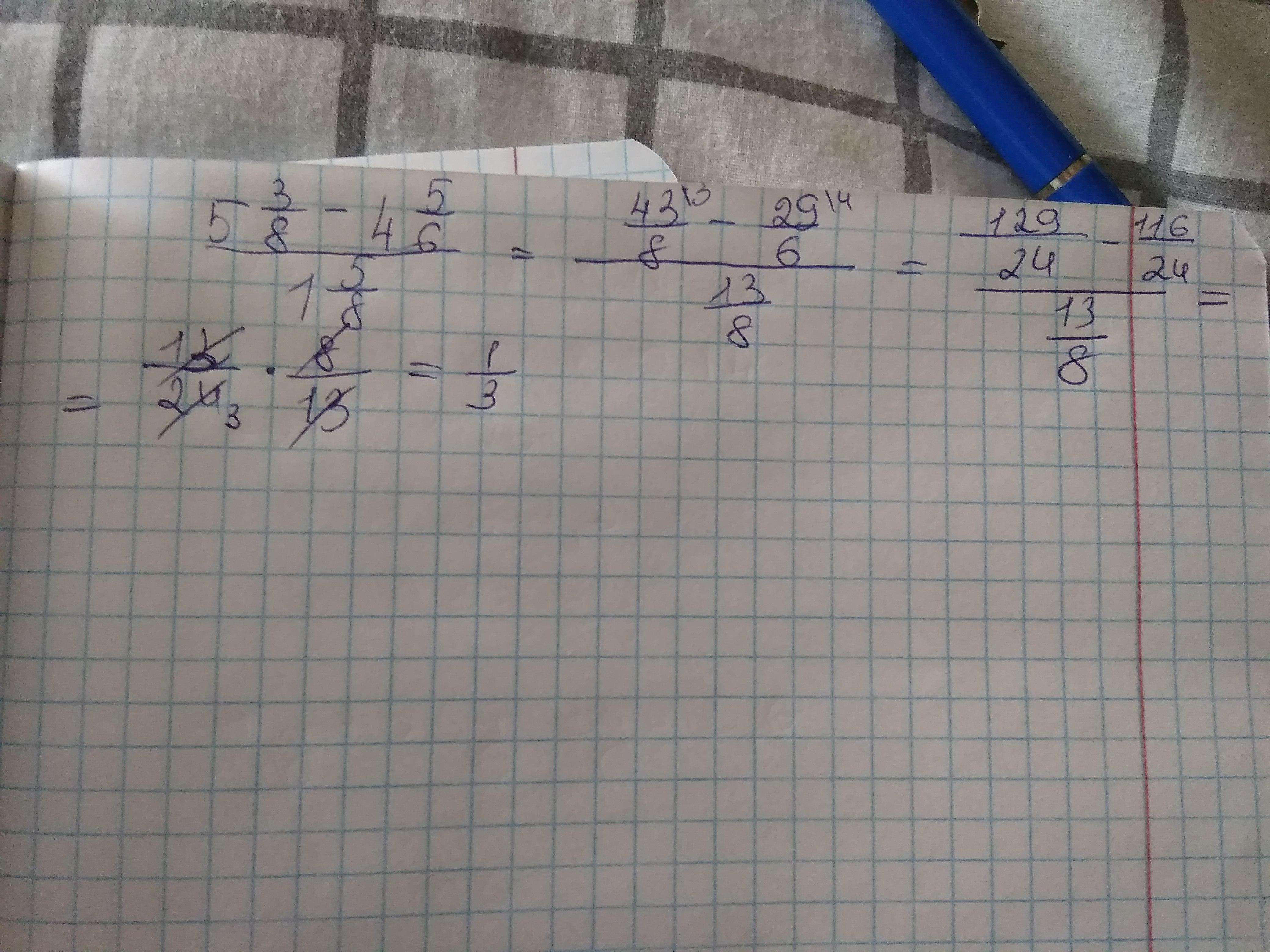 (5 цілих 3/8 - 4 цілих 5/6) : (-1 цілу 5/8)