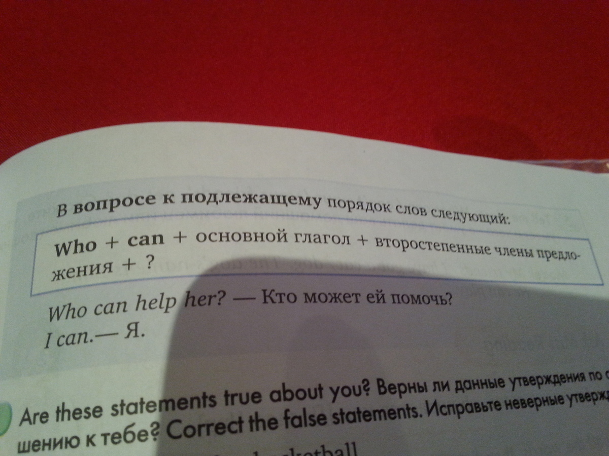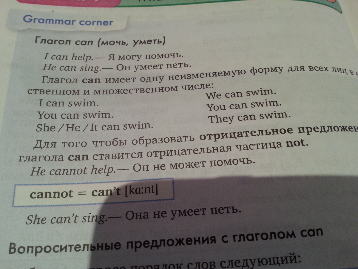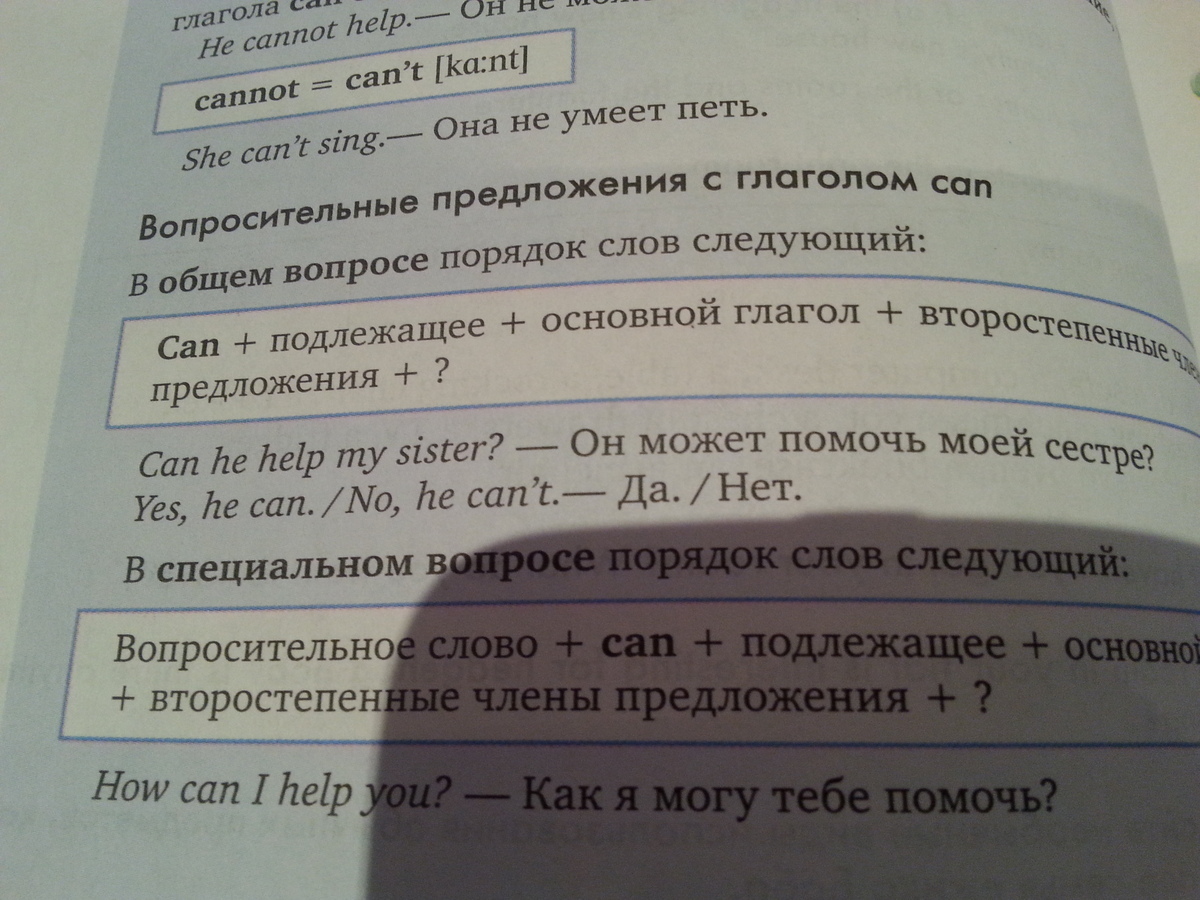Выполнить задания по правилу (правило во вложения) Задание Make sentences from rhese words 1) I / wash / can / the floor / not./ 2) they /can / TV / watch /? 3)can / she / look / me / at /. 4) to you / listen / we / can /? 5) he / ask / me / can /. 6) what /do /can / you./? 7)can / where / I / this book / find /? 8) who / translate / can / this text / ?
