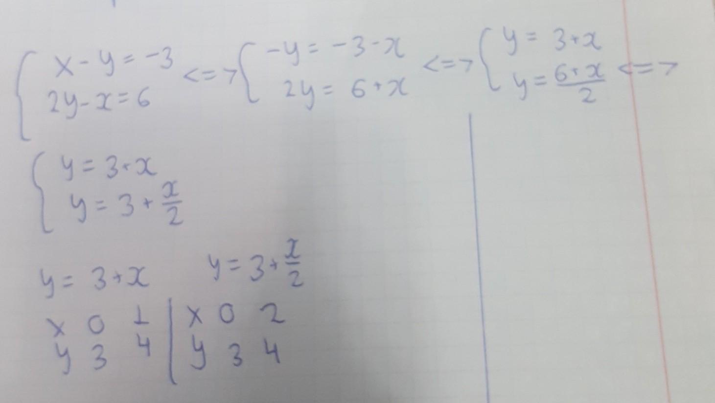 решить систему уравнений графическим способом: {x-y=-3 {2y-x=6