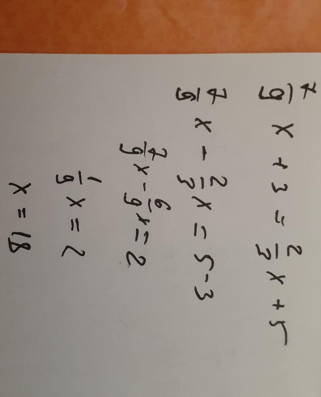 Для начала нужно привести дроби к общему знаменателю, умножив всё уравнение на конкретное число (здесь это будет 9) потом неизвестные числа (числа с буквой х) переносим влево, а известные соответственно-вправо. А потом делим известную часть на неизвестную и получаем ответ. Решение ниже: