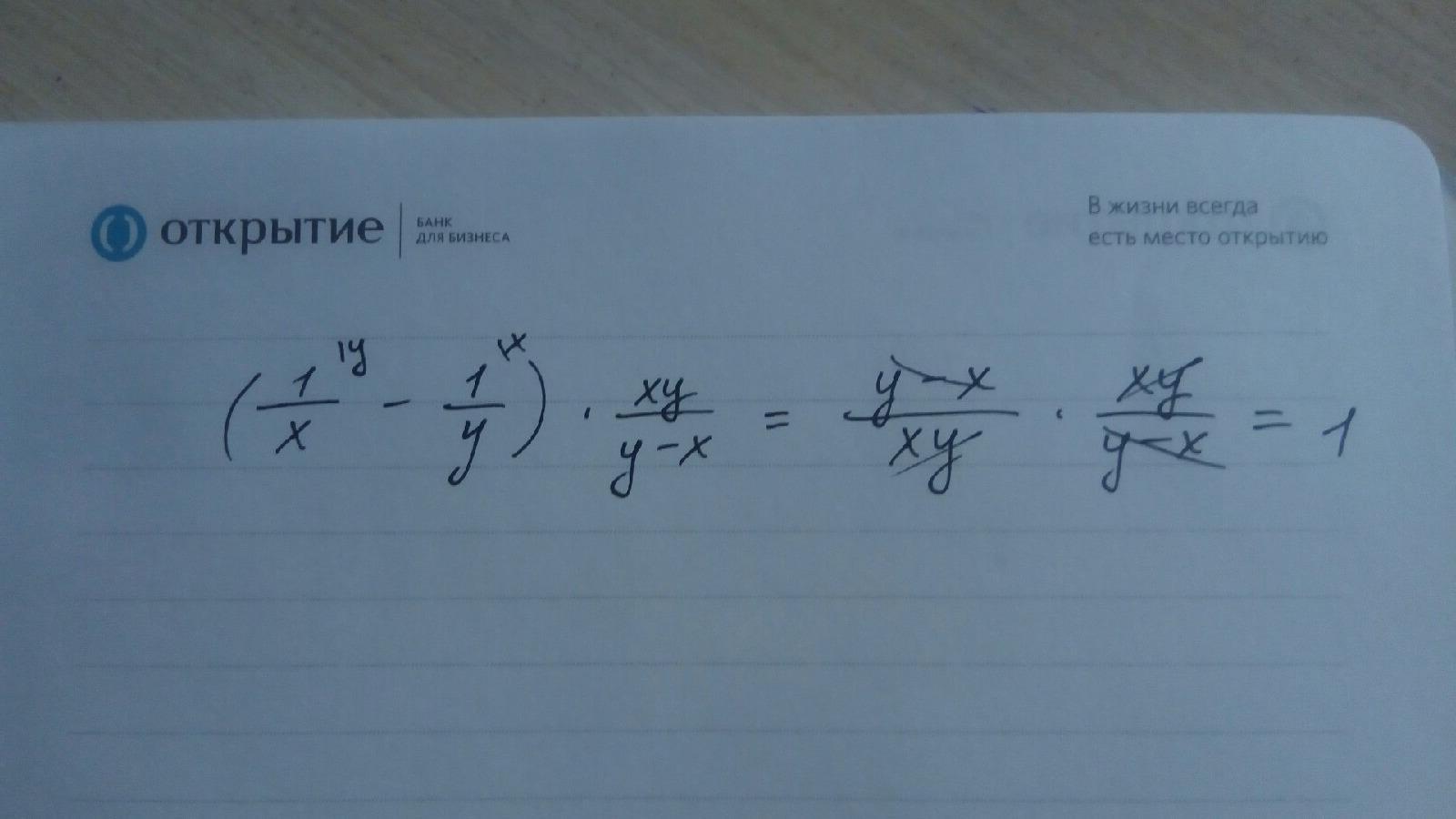(1:х - 1:y) * xy:y-x = (y-x:xy)*(xy:y-x)=1