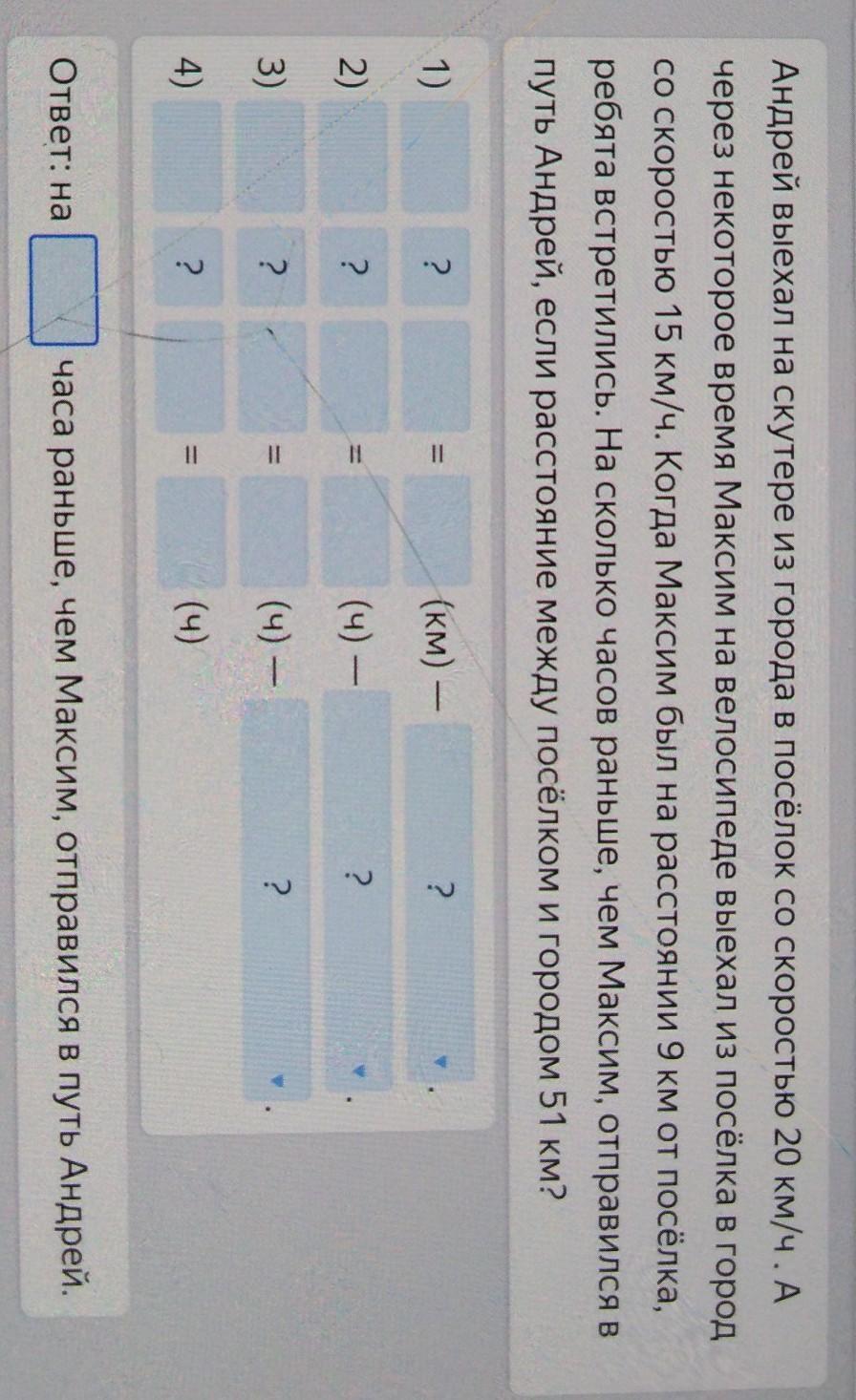 путь Андрей, если расстояние между посёлком и городом 51 км?