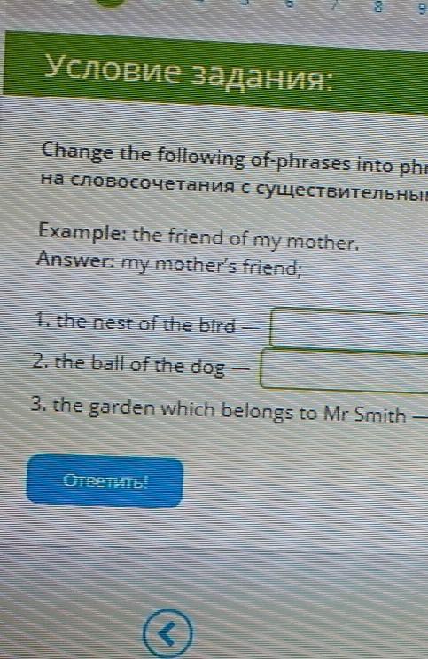 помогите пожалуйста умоляю. Измени фразы с предлогом of на словосочетания с существительным в притяжательное падеже.