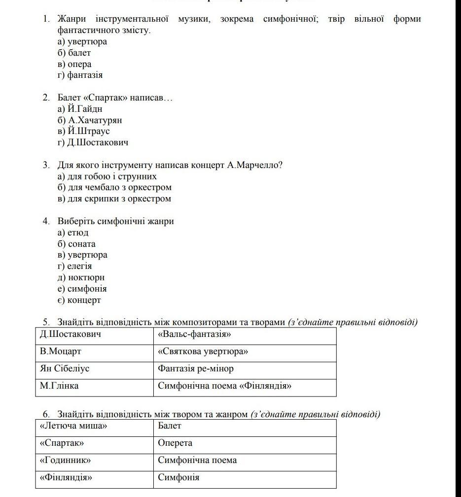 - "Летюча миша"(оперета);"Спартак"(балет)""Годинник"(симфонія);"Фінляндія"(симфонічна поема)