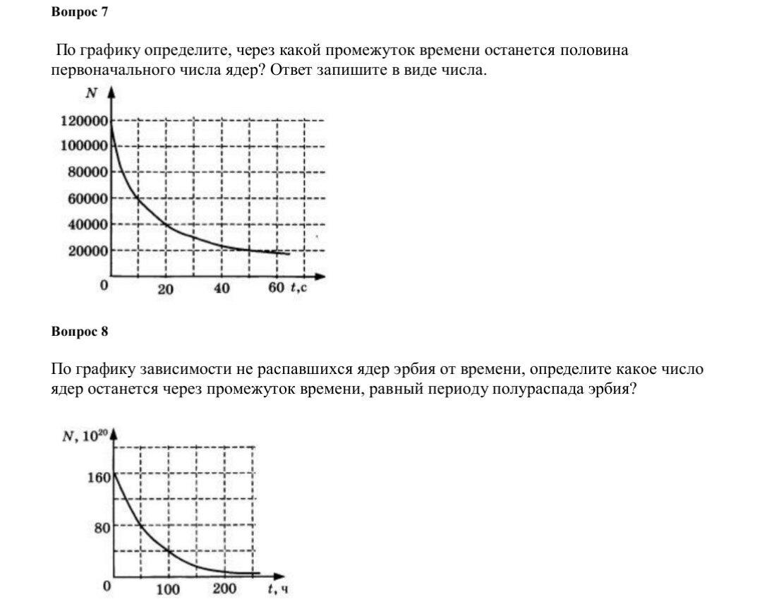 По графику зависимости не распавшихся ядер эрбия от времени, определите какое число