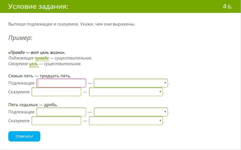 2. Подлежащее - пять седьмых. Сказуемое - дробь.