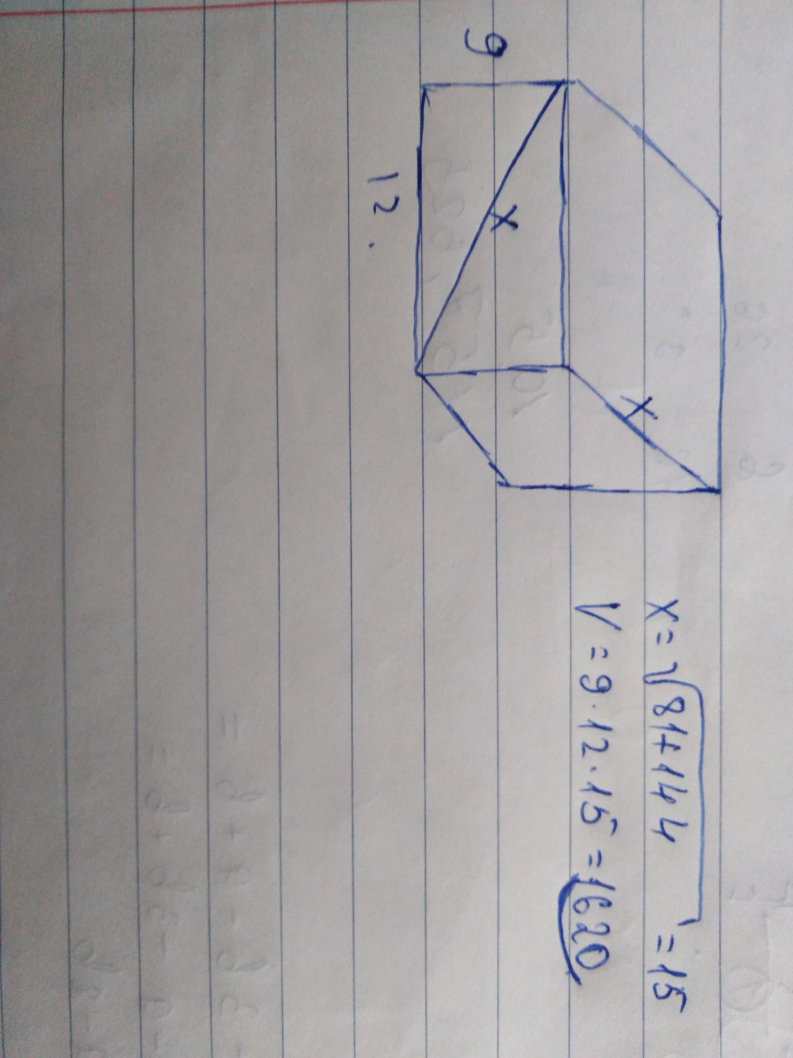 В прямоугольном параллелепипеде стороны основания 9 см и 12 см. Диагональ основания и