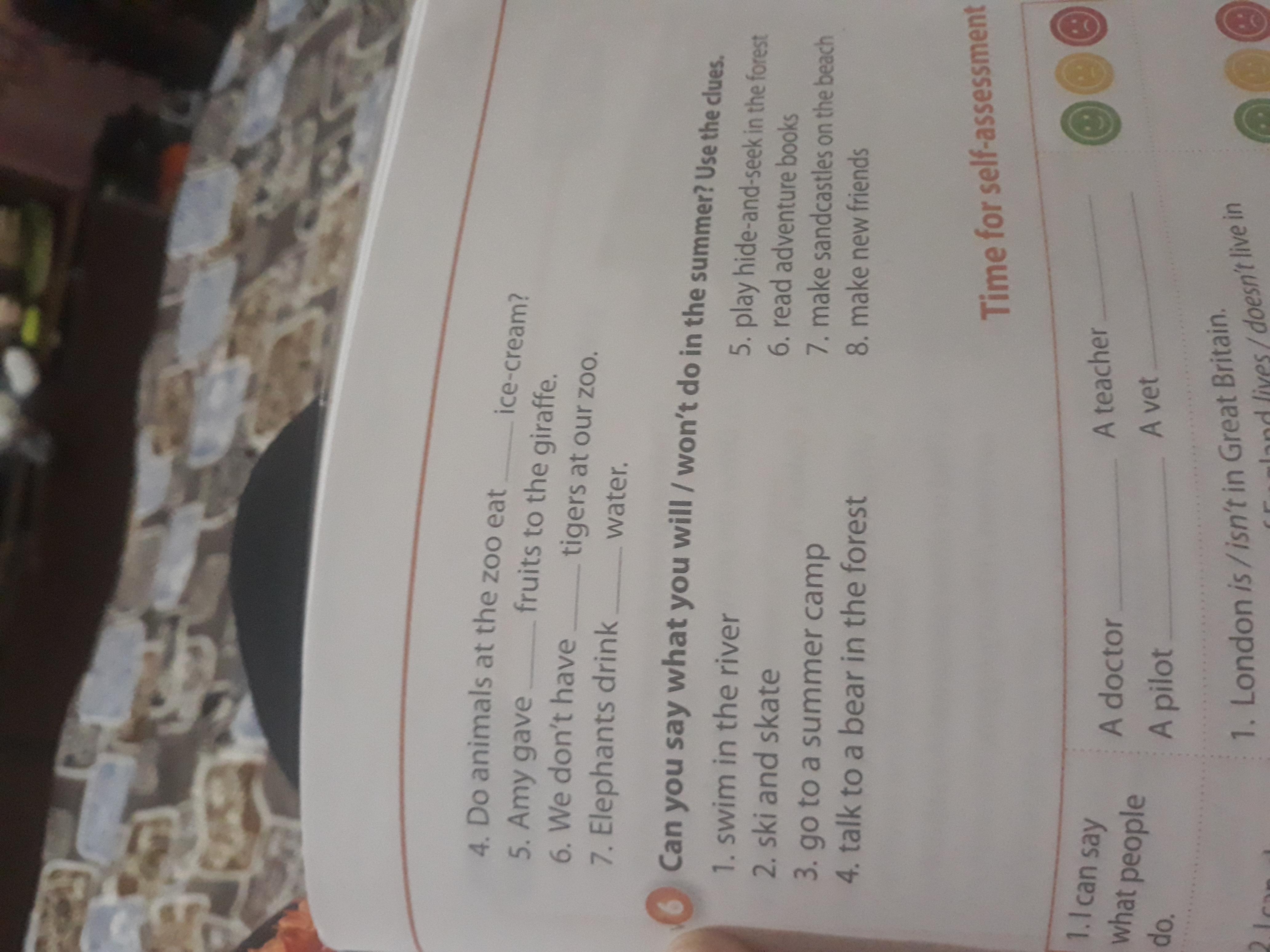 пишешь i will(или i won't) и потом пишешь то что в упражнении