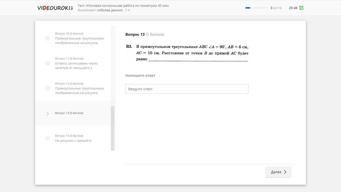 Расстояние от точки до прямой - перпендикуляр. Поскольку треугольник прямоугольный, сторона AB и есть перпендикуляр от точки B к прямой АС.