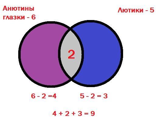 Шесть девочек принесли семена "Анютиных глазок", пятеро - семена "Лютиков". И только у двоих девочек есть семена "Анютиных глазок" и семена "Лютиков".