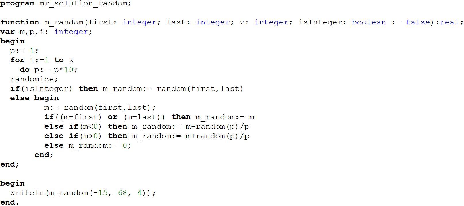 Программа выводит на экран случайное число из заданного промежутка с заданным количеством знаков после запятой.