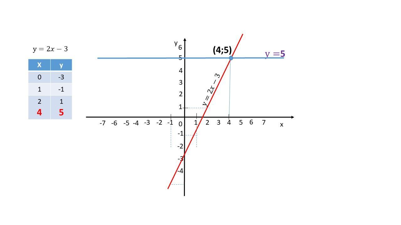 побудуйте в одний системи координат графику функций y=2x-3 та y=5 и знайдить координати точки их перетину