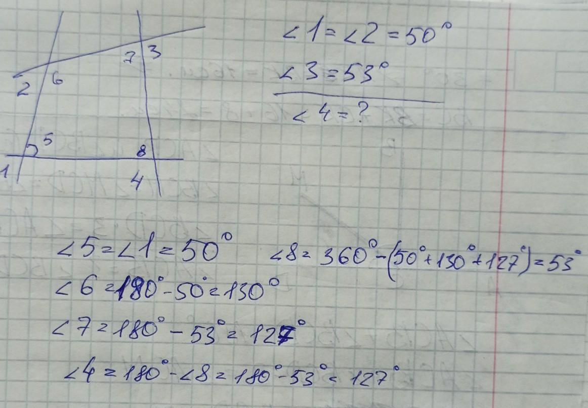 внутр.уг4 = 360-внутр.уг1-внутр.уг2-внутр.уг3=360-50-130-127=53