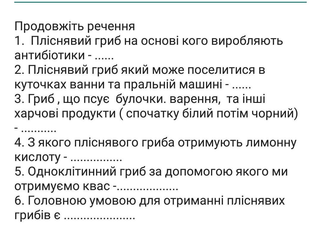 1-пеніцилін 2-грибок 3-хз 4-Штаммы гриба Aspergillus niger 5-дріжджі 6-волога та тепло
