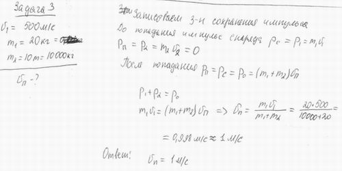 Снаряд массой 20 кг, летящий горизонтально со скоростью 500 м/с, попадает в платформу с песком массой 10 т и застревает в песке. С какой скоростью стала двигаться платформа?