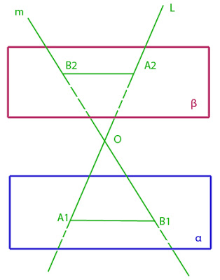 через точку О,лежащую между параллельными плоскостями a иb ,проведены прямые l и m. Прямая l пересекает плоскости a и b в точках A1 и A2 соответственно , прямая m -в точках B1 и B2. Найдите длину отрезка A2B2 ,если A1B1=12см , B1O:OB2=3:4