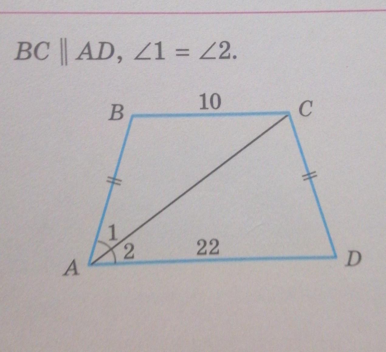 Дана р/бокая трапеция по условию. Т.к. BC//AD, то <2 =<BCA =<1