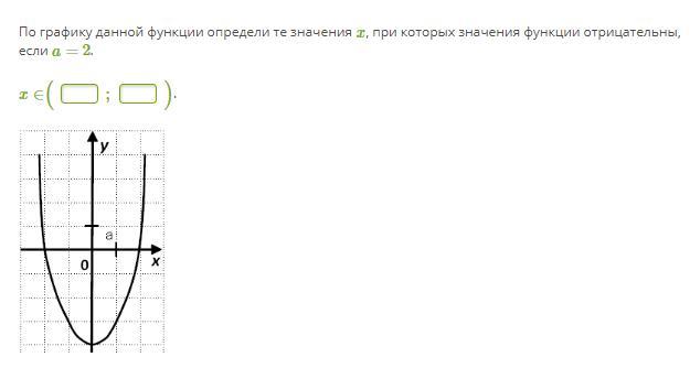 По графику данной функции определи те значения x, при которых значения функции отрицательны,