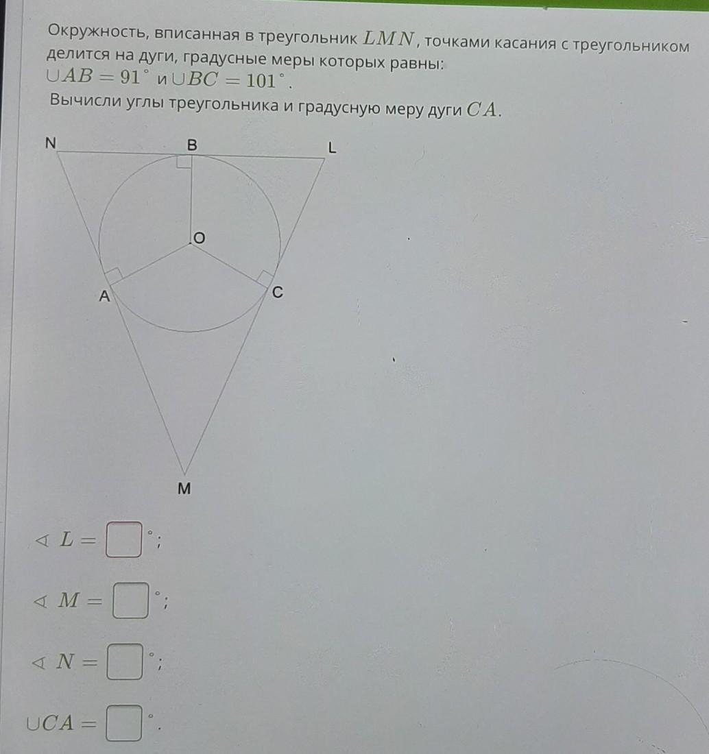 Дуга АС=360*-(101*+91*)=168*