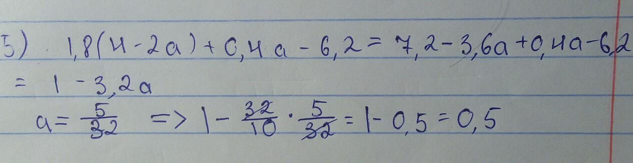 1.8(4-2a)+0.4a-6.2=7.2-3.6a+0.4a-6.2=1-3.6a+0.4a=1-3.2a