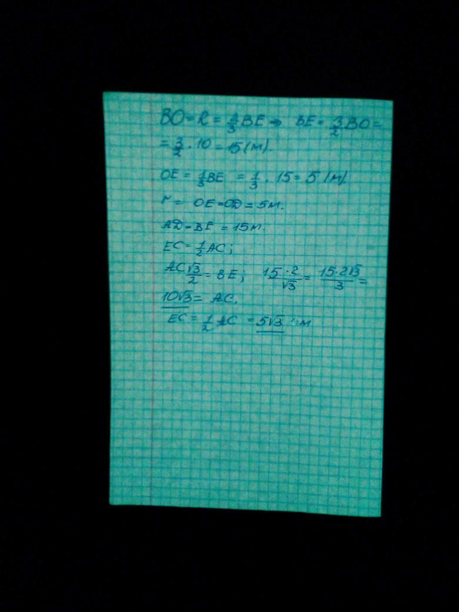 Маємо рівносторонній трикутник. Обчисли невідомі величини, якщо BO= 10 м.Помогите пожалуйста))