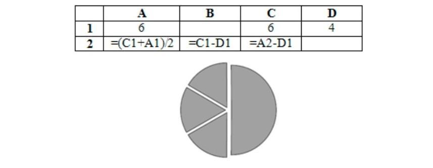 Дан фрагмент электронной таблицы. Какое число должно быть в ячейке D2, чтобы построенная после выполнения вычислений диаграмма по значениям диапазона ячеек A2:D2 соответствовала рисунку?