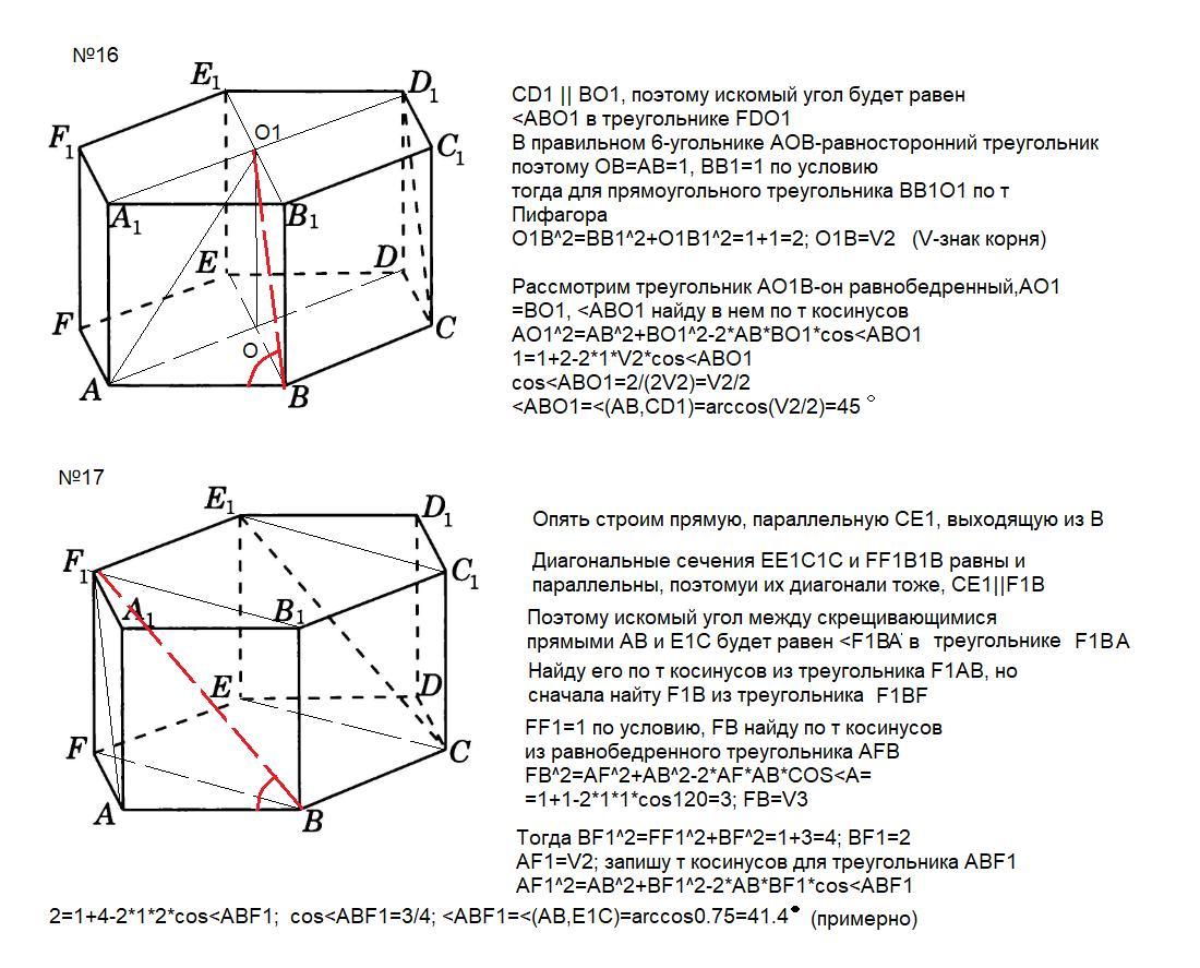 В правильной шестиугольной призме ABCDEFA1B1C1D1E1F1, все ребра которой равны 1, найдите угол между прямыми AB и CD1.